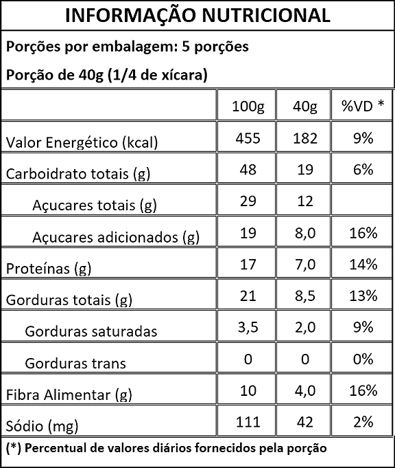 • Fonte de Fibras e Proteínas (7g/ porção de 40g)